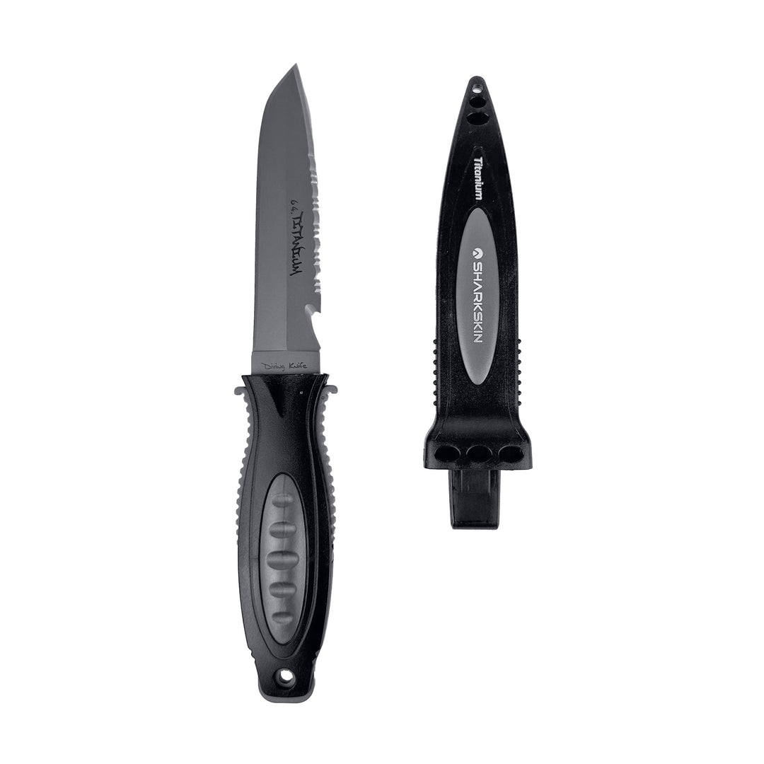 SHARKSKIN TITANIUM KNIFE SMALL WITH PRESS QUICK RELEASE LOCK SHEATH, BCD & HOSE MOUNT